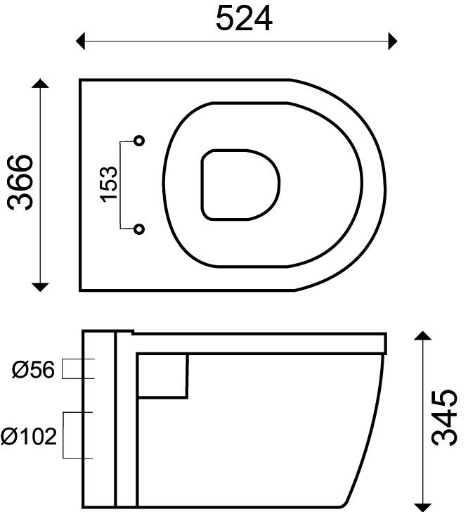 Wiesbaden Prio Rimless wandcloset, Rimless: zonder spoelrand voor een hygiënisch toilet, H-H aansluiting: 18mm, Kleur: wit, 522 x 366,