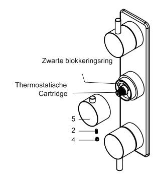 Rombo inbouw 3-wegs douchethermostaat rond chroom, Inbouwdeel compleet met afbouwdeel chroom, 2xknel 15mm aansluiting, Bodemplaat 75x185, -de onderste knop is een aan/uit knop voor één uitgang, -de middelste knop is de thermostaatbediening met begrenzer o
