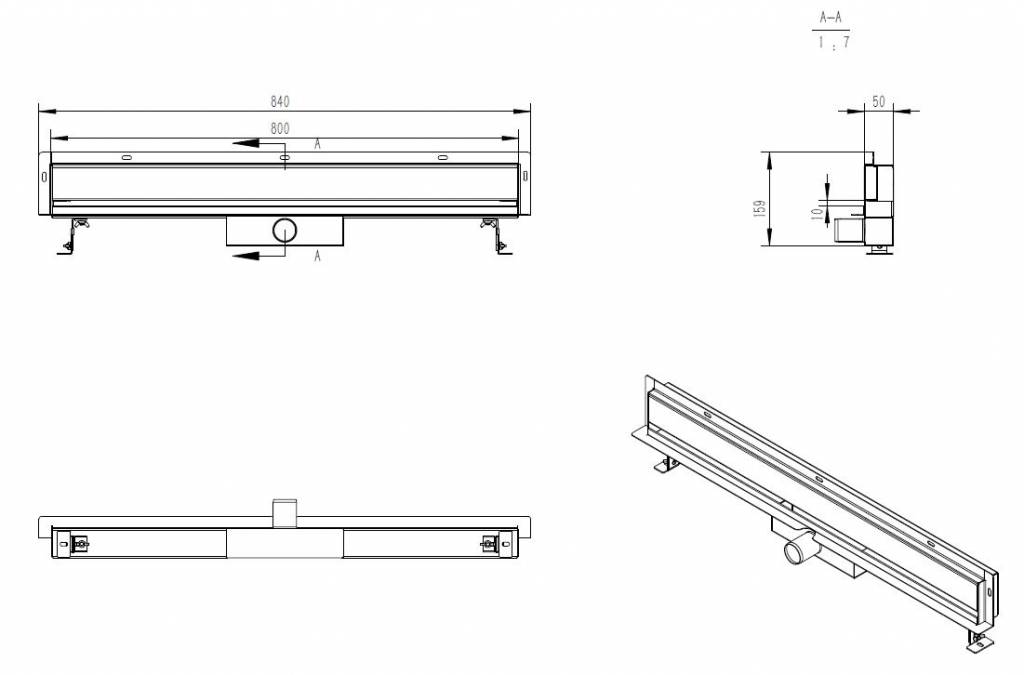 Wiesbaden RVS muurgoot + flens + kunstst.sifon +filter 80x7 - Megadump Tiel
