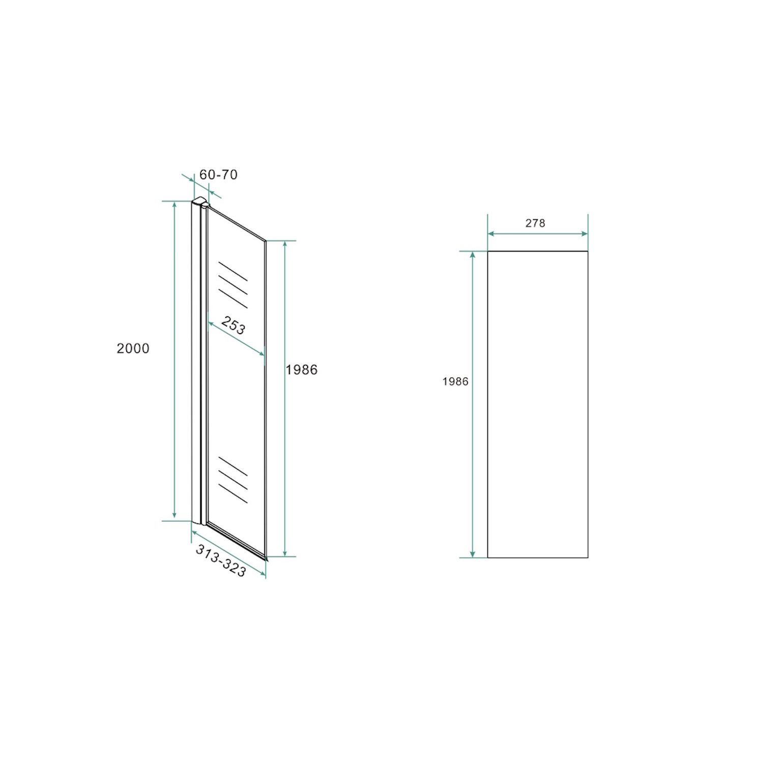 Wiesbaden scharnierende zijwand 30cm + muurprofiel Nano 10mm - Megadump Tiel