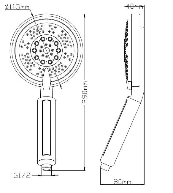 Triton verstelbare handdouche chroom, Diameter 10cm , 5 standen verstelbaar, Anti-kalk functie, 1/2" aansluiting, Fraaie full-color doos,