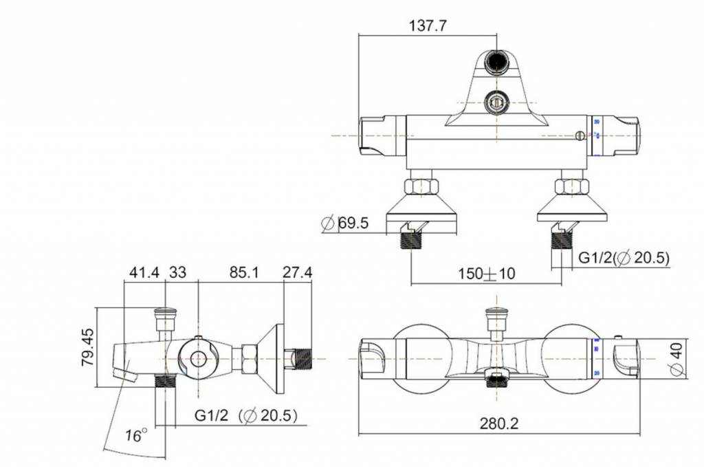 Universal therm.badkraan chroom