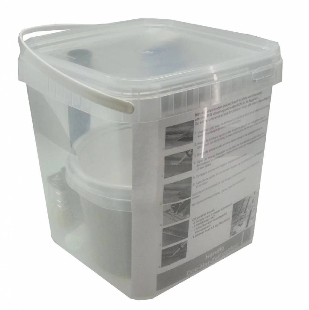 Het item komt met 3 meter kimmerband, blokkwast 3x7 cm, sanitairkit en 1,5kg Flexdicht.