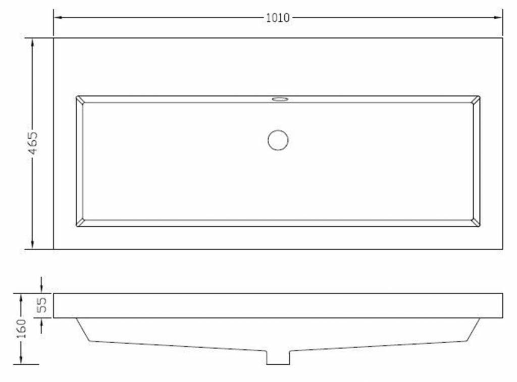 Wiesbaden Vision kunstmarmer wastafel zonder kraangat 100x46 wit, Hoogte: 5,5cm, Zonder kraangaten, dus geschikt voor inbouw-wastafelkranen, Met overloop, Geschikt voor zowel de Tigris als de Vision serie badmeubels,