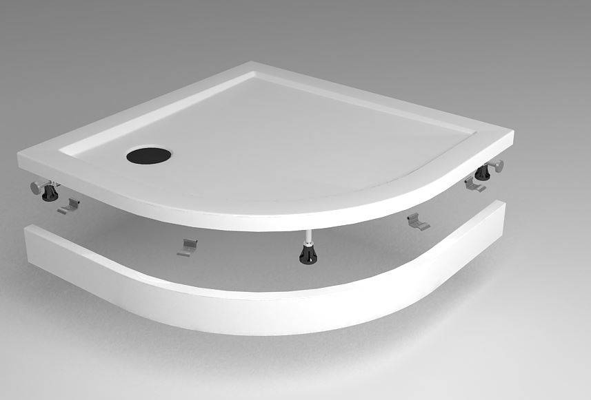 Voorzet paneel met poten voor de douchebak. Dit is voor de ronde douchebak acryl 90x90 Wit (artikelnummer 21.3511). Het voorzet paneel zorgt ervoor dat de douchebak aan de voorkant voorzien wordt van speciale panelen voor de afwerking van uw douchebak.