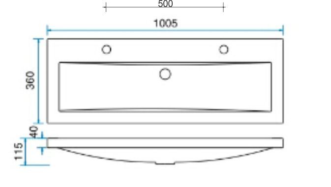 Wiesbaden wastafel 100cmx36cm twee kraangaten wit