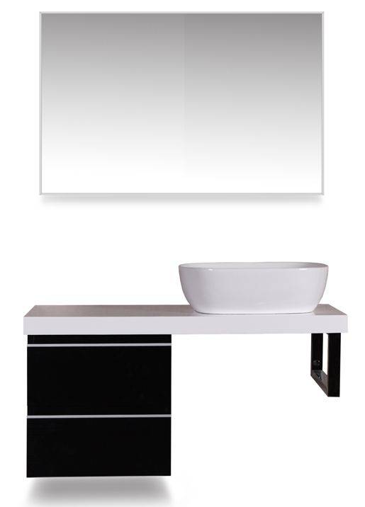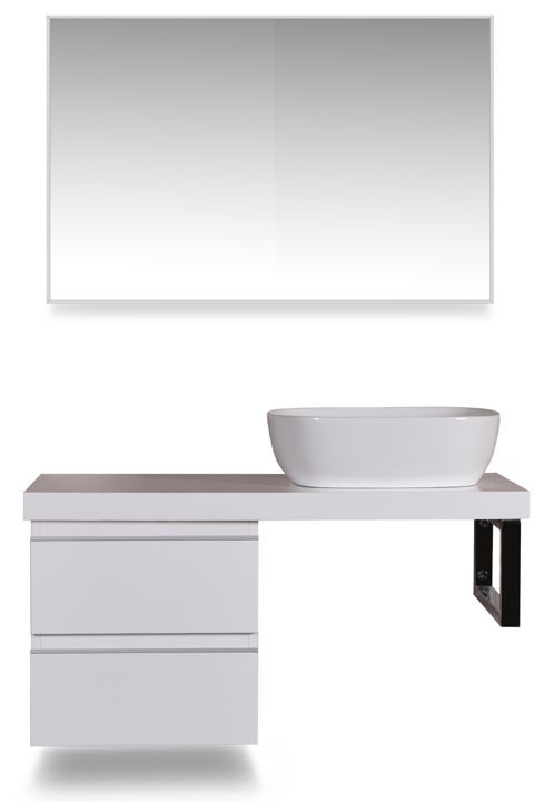 wastafelblad, 1000 x 460 x 55, voor 1 wastafel, hoogglans wit gelakt, Dit blad combineren met een ladekast en een vierkante beugel, wastafel zowel links als rechts te plaatsen, Eventueel kraangat zelf aan te brengen,