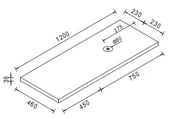wastafelblad, 1200 x 460 x 36, voor 1 wastafel, houtnerf grijs Dit blad combineren met een ladekast en een vierkante beugel, wastafel zowel links als rechts te plaatsen, Eventueel kraangat zelf aan te brengen,