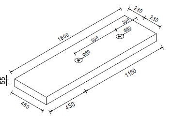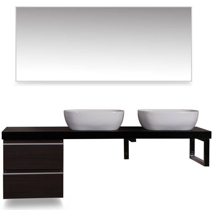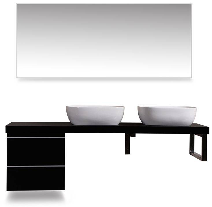 wastafelblad, 1600 x 460 x 55, voor 2 wastafels, houtnerf zwart gelakt, Dit blad combineren met een ladekast, een L-beugel en een vierkante beugel, wastafels zowel links als rechts te plaatsen, Eventuele kraangaten zelf aan te brengen,