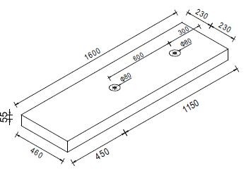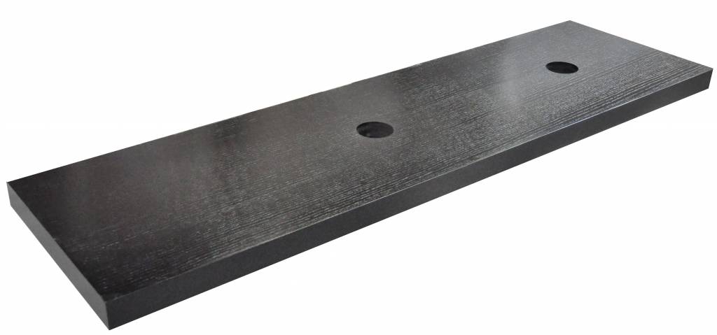 wastafelblad<br/> 1600 x 460 x 55<br/> voor 2 wastafels<br/> houtnerf zwart gelakt<br/> Dit blad combineren met een ladekast, een L-beugel en een vierkante beugel<br/> wastafels zowel links als rechts te plaatsen<br/> Eventuele kraangaten zelf aan te bren