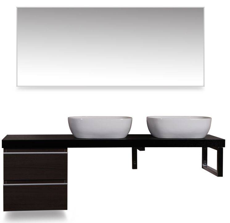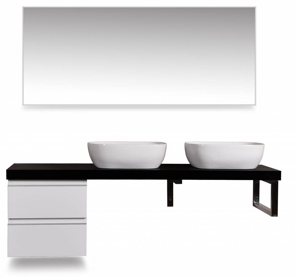 wastafelblad 1600 x 460 x 55 voor 2 wastafels houtnerf zwart gelakt Dit blad combineren met een ladekast, een L-beugel en een vierkante beugel wastafels zowel links als rechts te plaatsen Eventuele kraangaten zelf aan te brengen