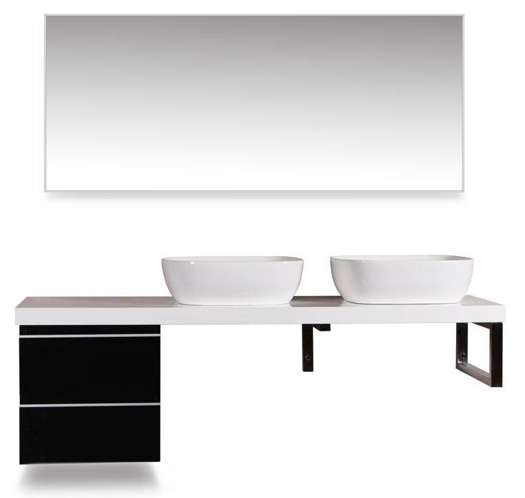 wastafelblad, 1600 x 460 x 55, voor 2 wastafels, hoogglans wit gelakt, Dit blad combineren met een ladekast, een L-beugel en een vierkante beugel, wastafels zowel links als rechts te plaatsen, Eventuele kraangaten zelf aan te brengen,