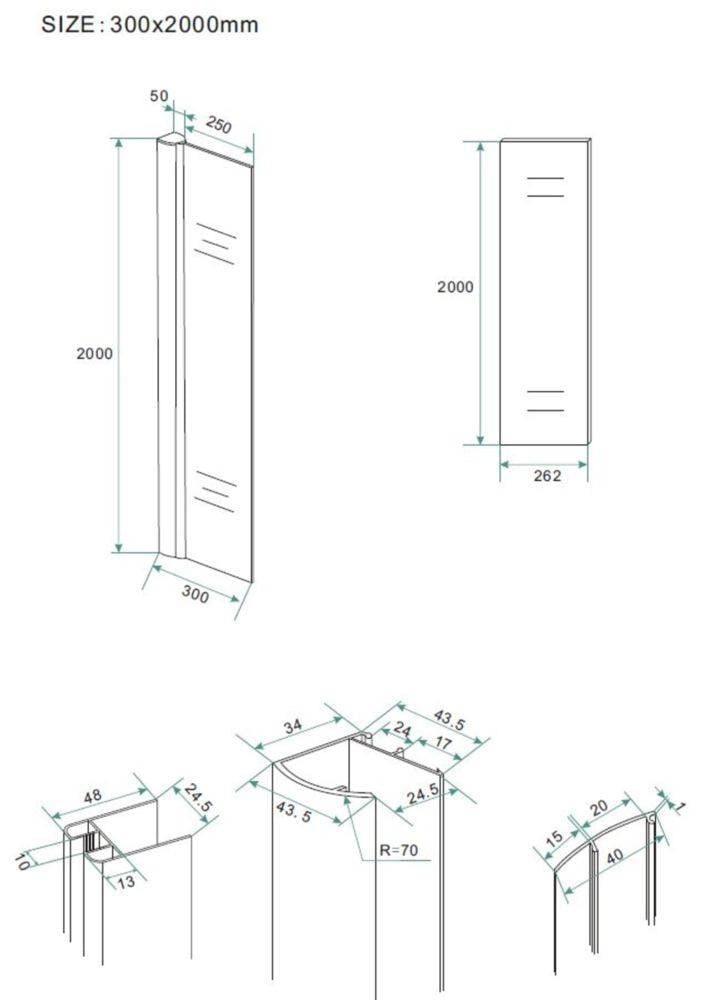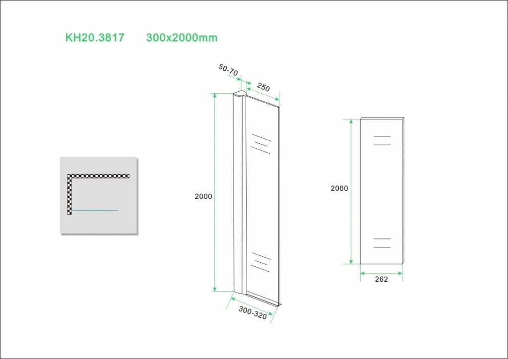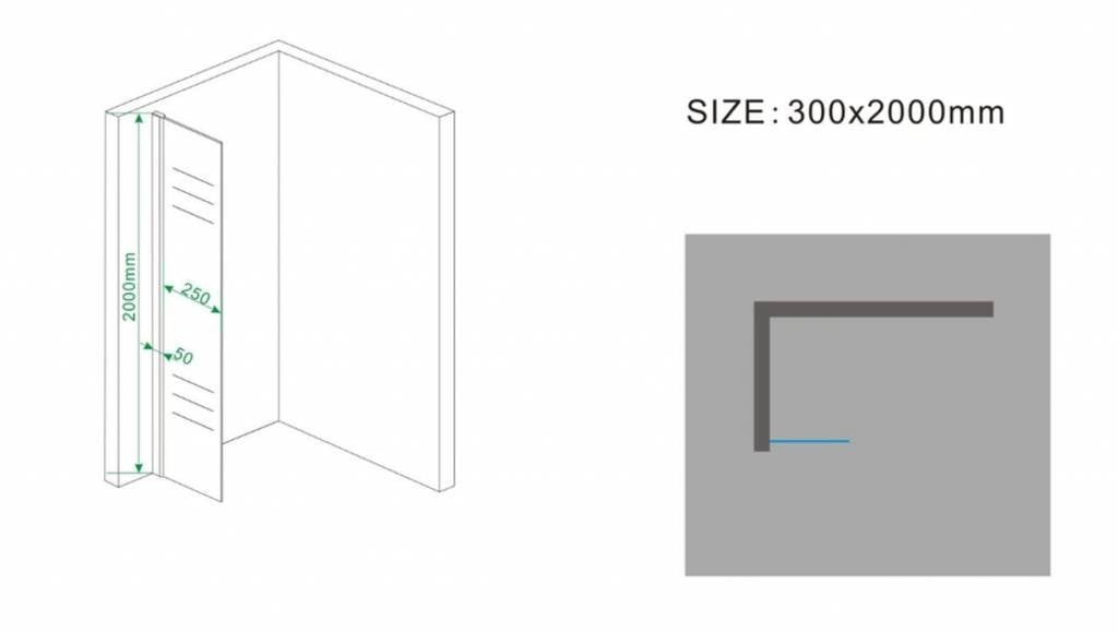 Zeer fraaie Inloopdouche 30cm breed 200cm hoog inclusief chroom zijprofiel 10mm NANO veiligheidsglas voor het tegengaan van kalkafzetting op de glaswand. Verstelbaar van 30 cm - 32 cm
