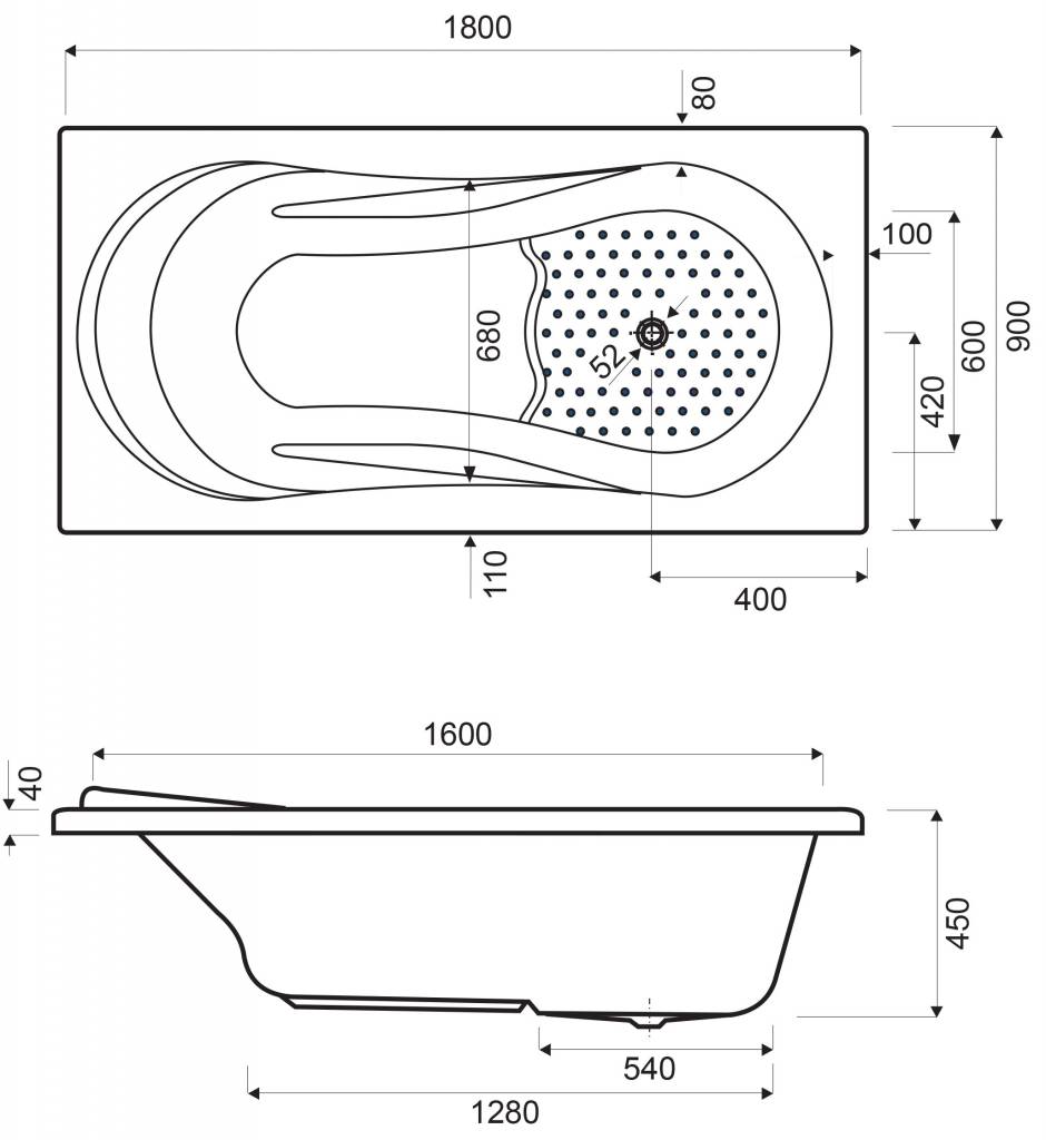 Mooi Ligbad van Wisa. Dit ligbad is gemaakt van acryl. Acryl is erg duurzaam en heeft als eigenschap dat het erg warmte isolerend is. De diepte van dit bad is 45 cm.
