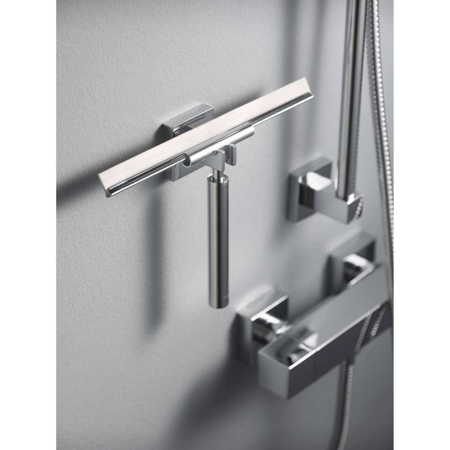 Rond en vierkant gaan fraai samen in het design van deze wisser in Mezzo-stijl. Met deze handige wisser houdt u het glas en de tegels van uw badkamer nog jaren netjes. En u bergt hem na gebruik netjes op: aan de bijpassende haak.