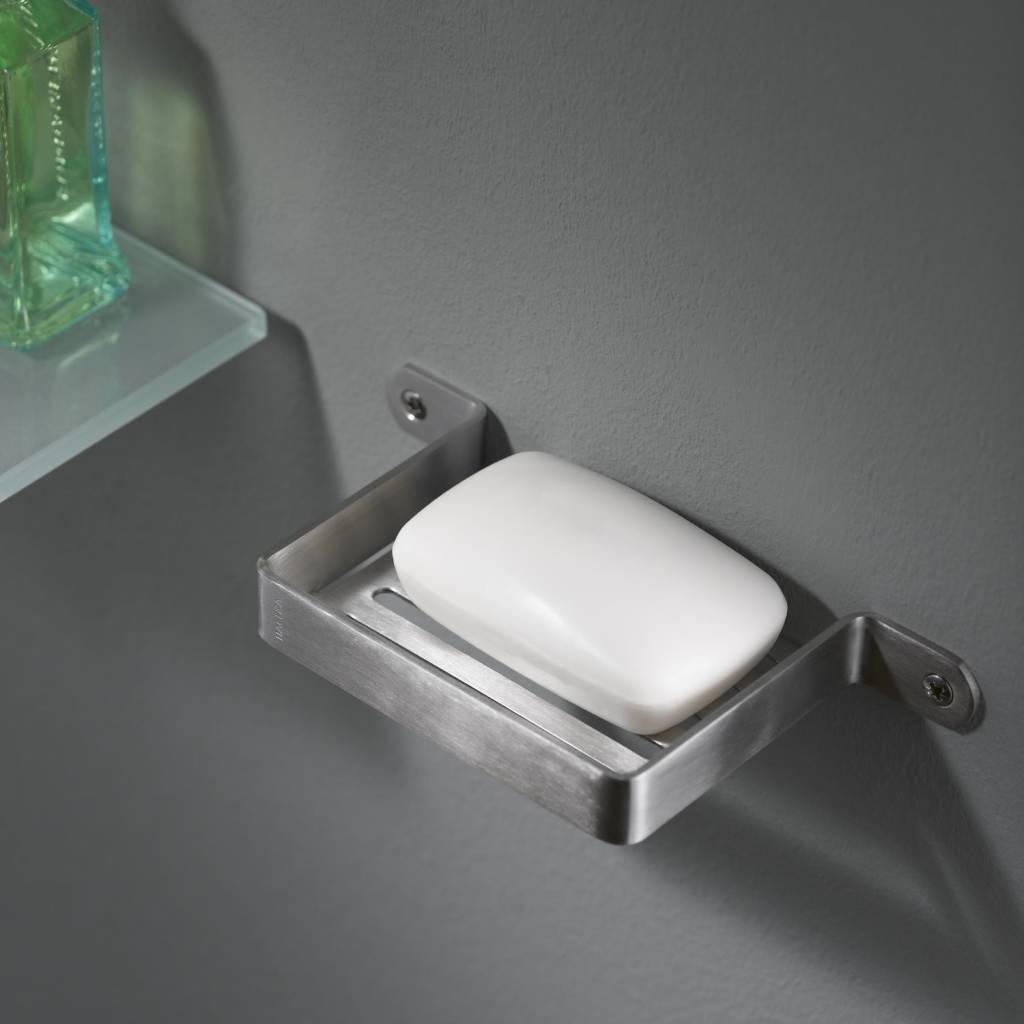 Deze vlakke zeephouder voor in uw douche past perfect in de Ixi-lijn: het ontwerp is hip en lekker stoer. Het RVS materiaal geeft uw badkamer een fraai industrieel accent. Montage De schroeven en pluggen voor bevestiging zitten in de verpakking.