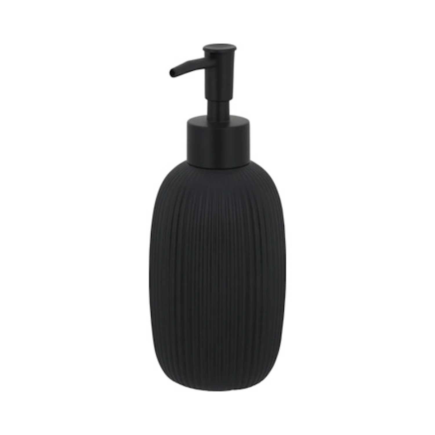 Deze vrijstaande zeepdispenser van het merk Haceka uit de serie Ribbel zorgt voor een moderne en gezellige sfeer in uw badkamer of toilet. De Zwart gekleurde zeepdispenser is gemaakt van ABS-kunststof en Polyhars. Polyhars is een mengsel van gemalen natuursteen vermengd met een vloeibare kunsthars. Hierdoor is de zeepdispenser steenhard, vochtbestendig en kleurvast. Ideaal voor gebruik in uw toilet of badkamer.